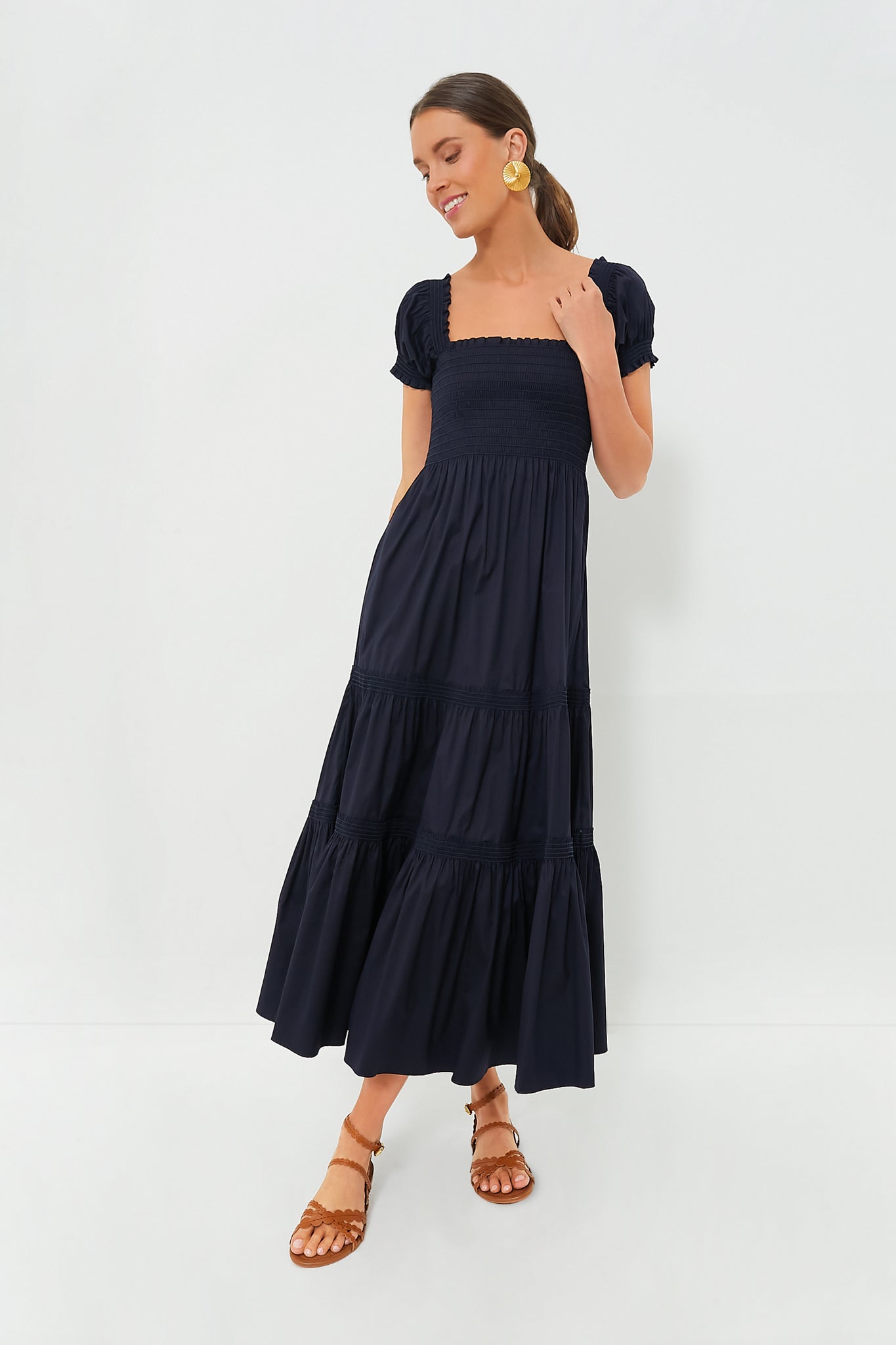 Medium Navy Smocked Cotton Dress