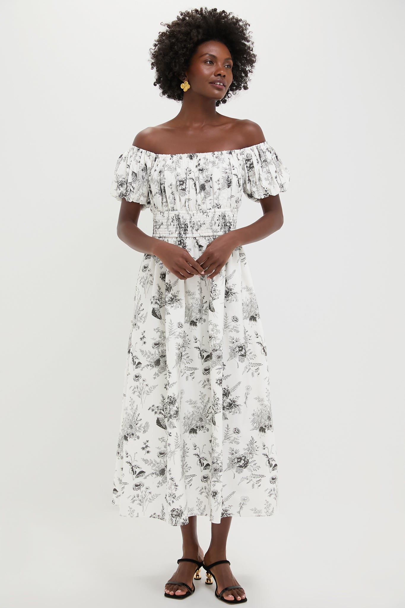 Black & White Floral Smocked Helena Maxi Dress