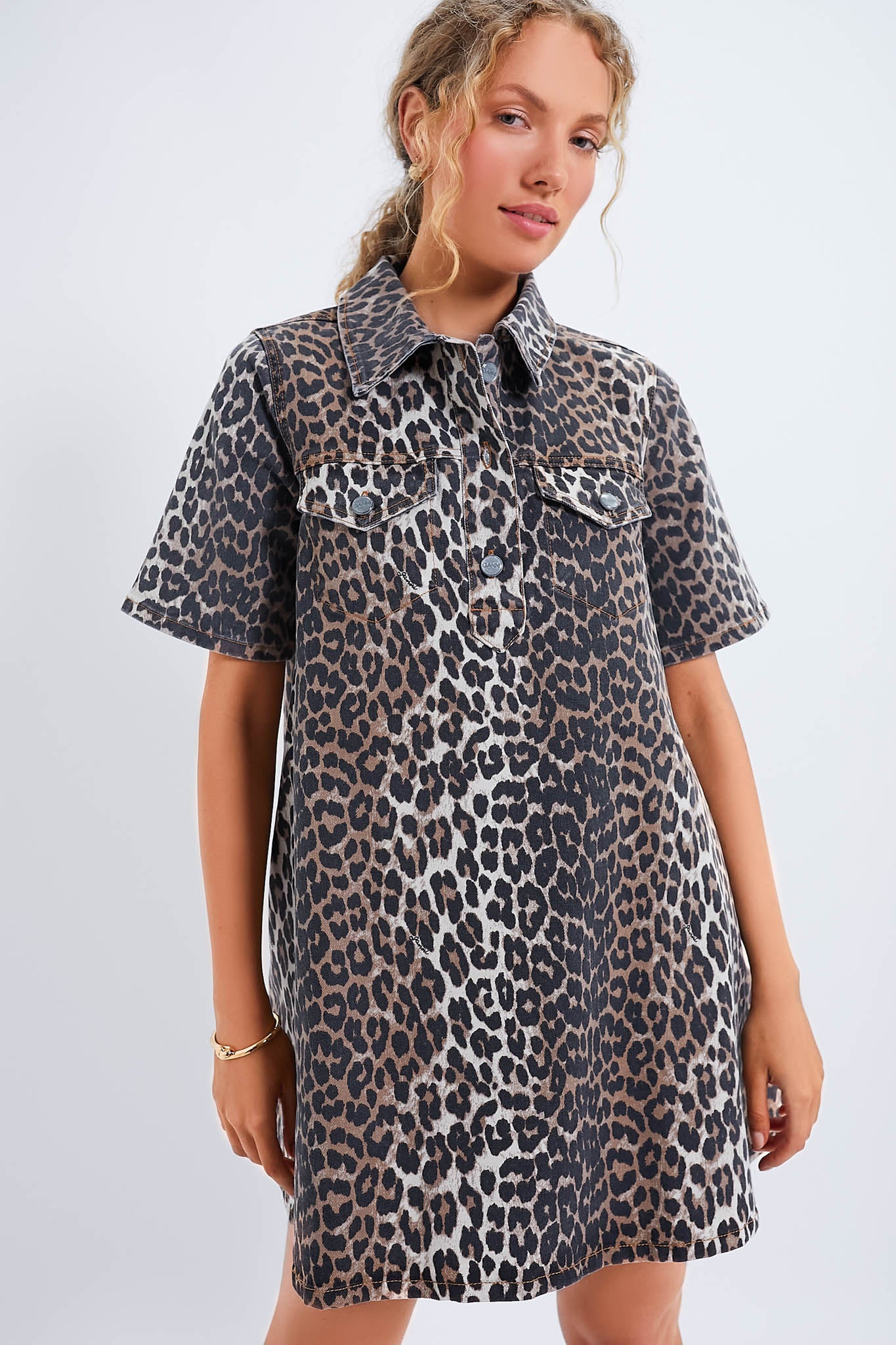 Leopard Print Denim Mini Dress