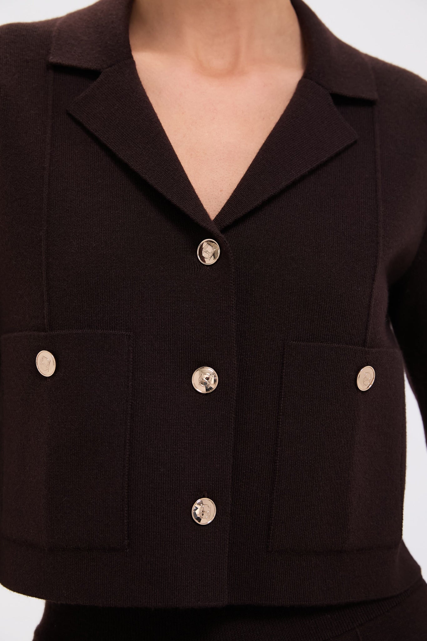 The Americano Wool Cropped Blazer is a chic. yet modern twist on the class blazer. With a cropped fit. gold button detailing. and patch pockets. style this jacket with the matching Americano Wool Flared Pants and flats or pair with denim and a kitten heel for an elevated everyday look!