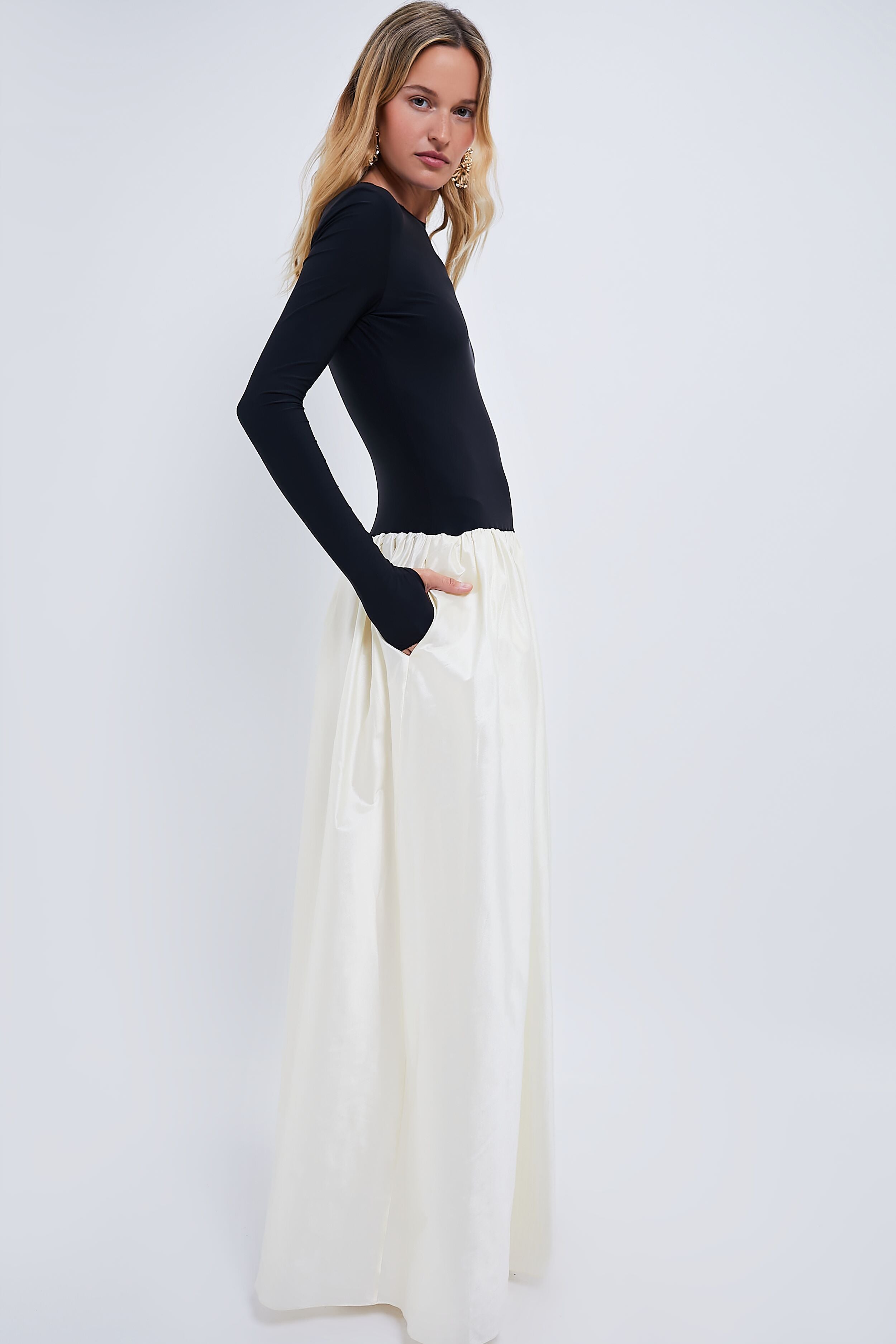 The Meringue Maxi Dress is equal parts classy and dramatic. making it a perfect look for formal events. The fitted. sleek bodice leads into a voluminous contrast skirt. Style with stilettos and a party clutch for a look that will turn heads.