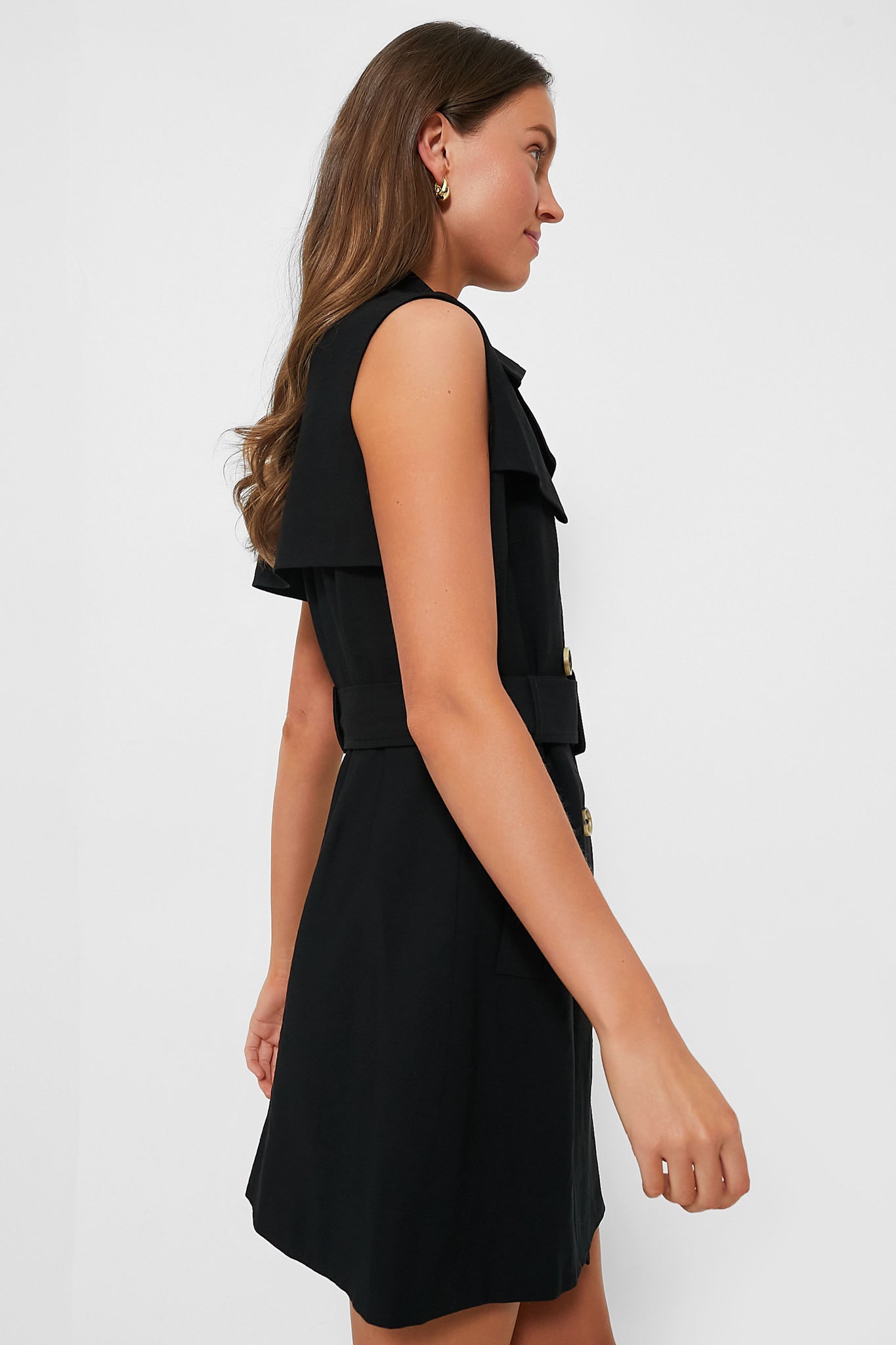 The classic trench takes on a new meaning in the Black Mila Dress. Featuring a notched lapel collar. double breasted button closure. and side seam pockets. this mini is an easy throw and go style this season. Perfect for the transitional weather ahead. pair with a cross body and flats for a Sunday brunch or with a blazer and sling backs for a work to dinner look.
