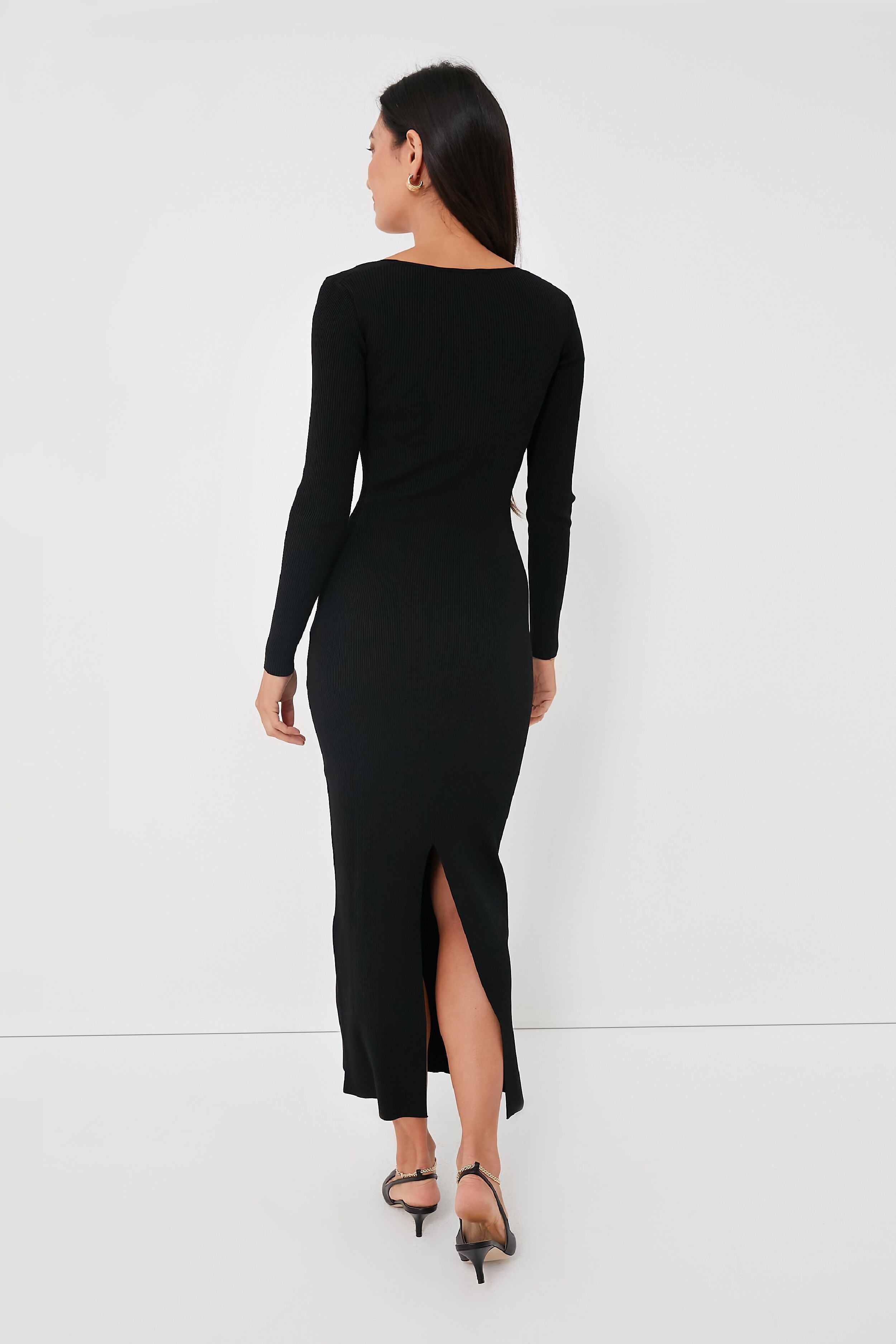 Who said wardrobe staples can't be sleek and chic? The Black Silhouette Dress may seem simple at first glance. but it is full of elegant and thoughtful details for an extra touch. A feminine sweetheart neckline. structured bustier-inspired bodice. and flattering compact knit texture all make this LBD one you have to have — pair with flats. heels. or boots for a go-to outfit all season long.