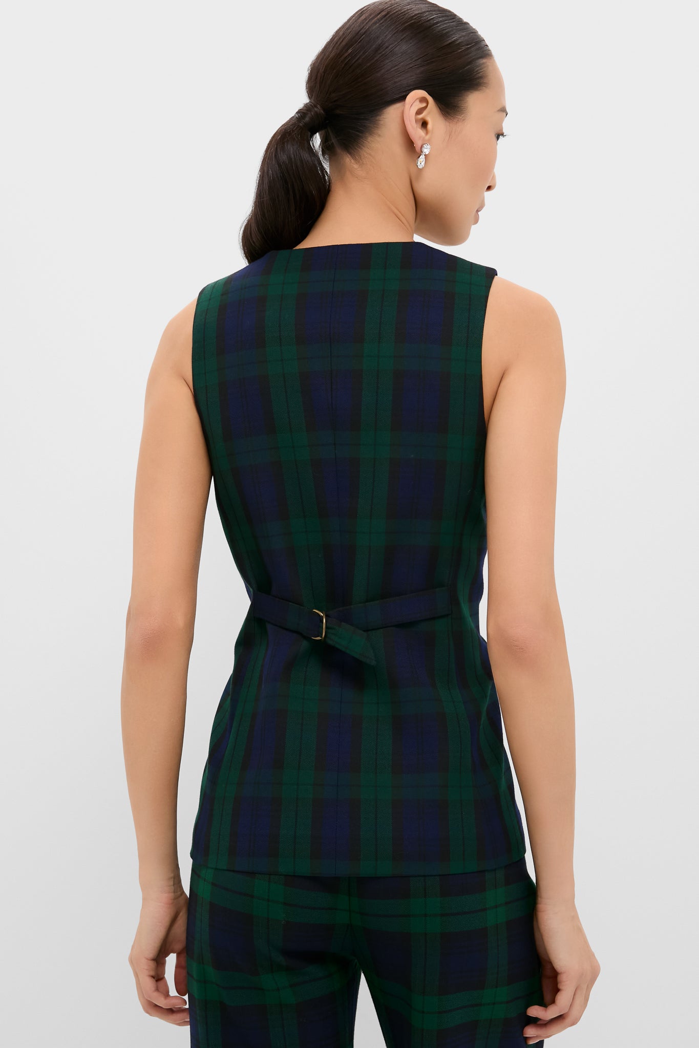 The Blackwatch Thompson Vest is a festive top for your next holiday occasion! With an elegant silhouette. and V-neckline. this sleeveless top is perfect for everything from date night to cocktail parties. Pair with gold accessories and the matching Blackwatch Erin pant for a monochromatic that is sure to stun!