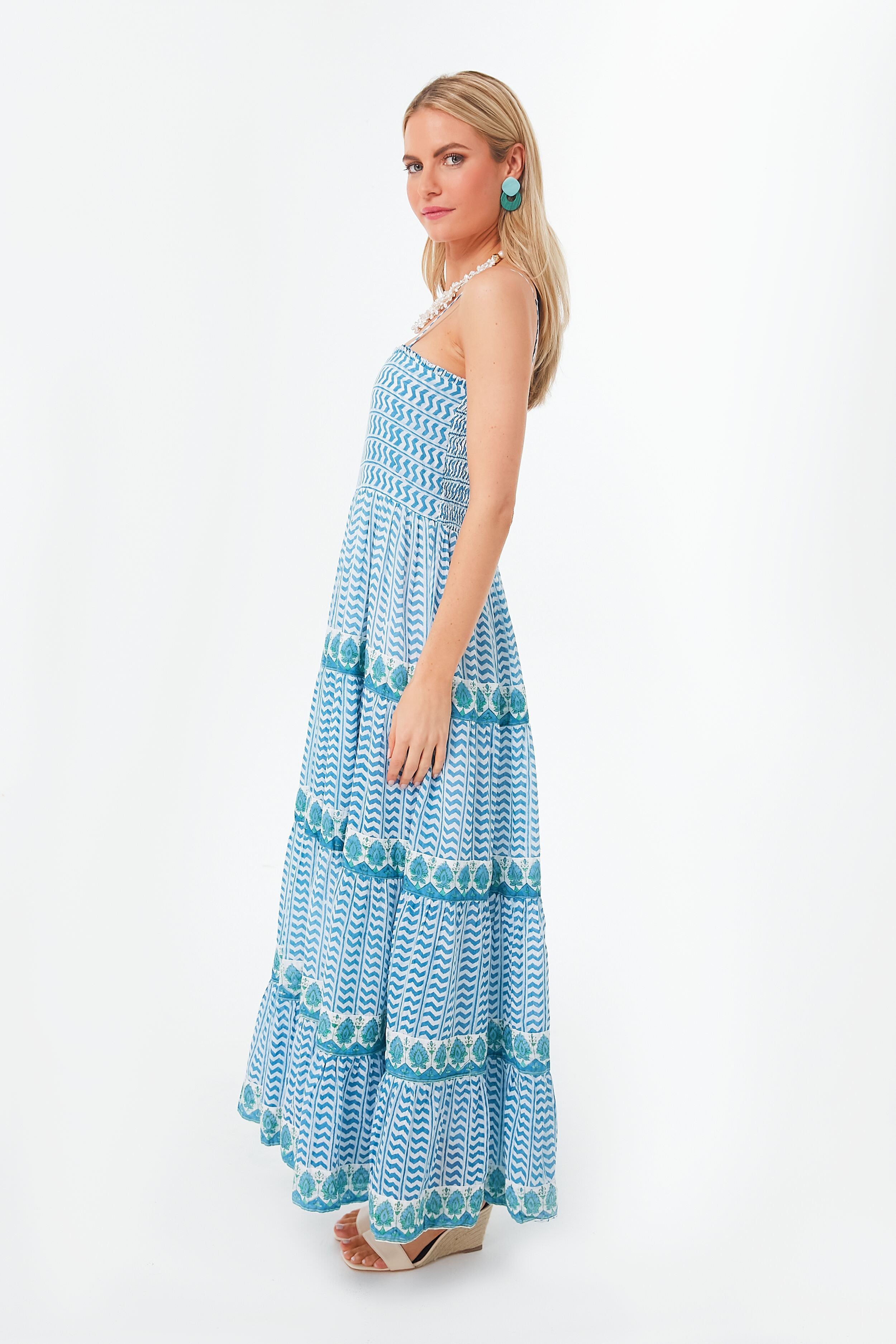 We all need a throw-on-and-go sundress for when creating an outfit feels like a chore. The Blue Marley Maxi Dress is exactly that. with an effortless boho-chic style and vibrant colorway to refresh and reenergize you when you need it. A square neckline. adjustable spaghetti straps. and a smocked back make this silhouette easy to wear and a breezy cotton voile makes it comfortable enough for day to night. Pair with sandals and a tote for a day of running errands. and elevate it with wedges and statement earrings for palomas and dinner al fresco with the girls.