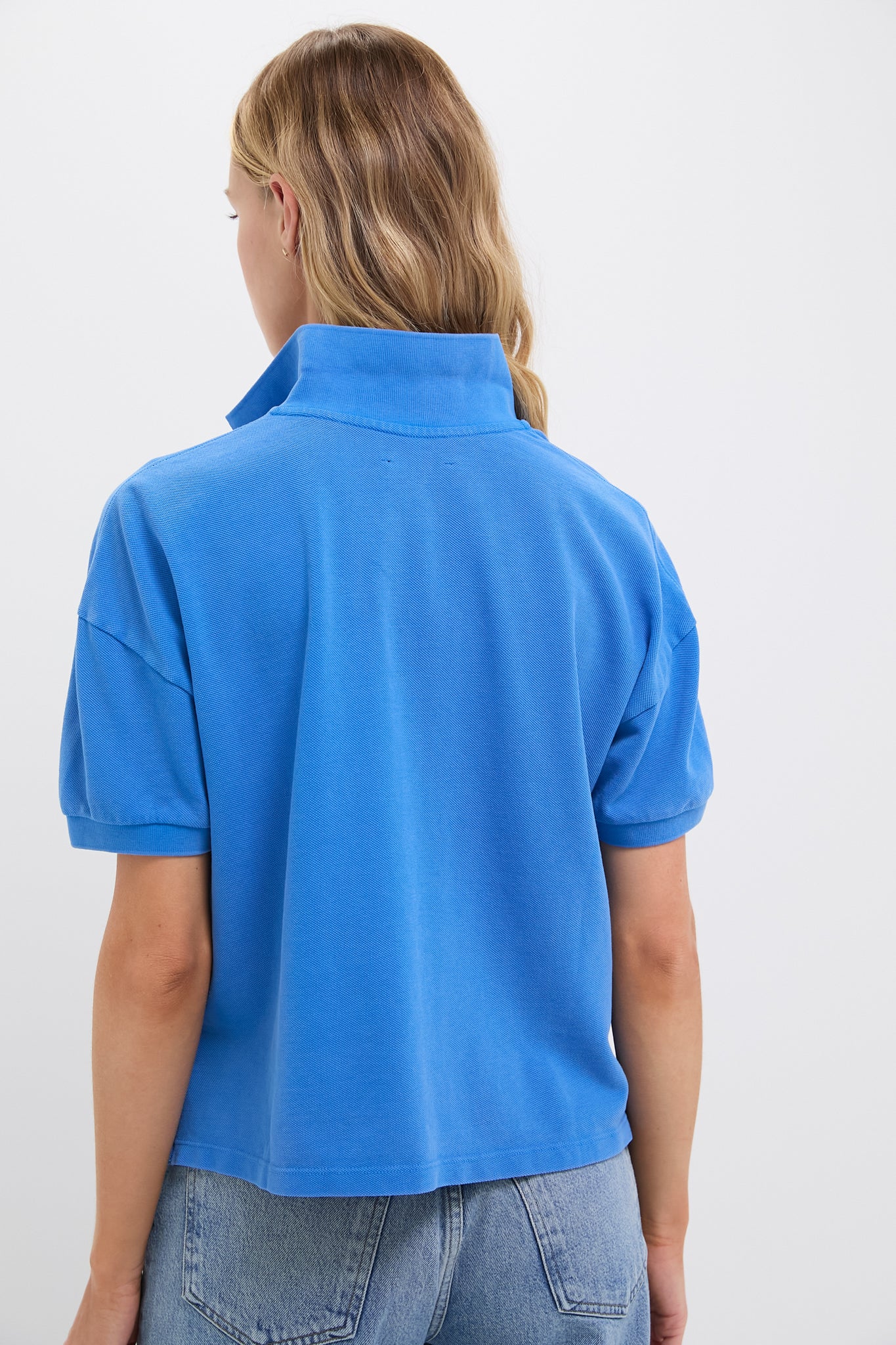 This boxy silhouette features a thick knit collar. a high-low hem that lands right at the pants line for easy tucking. and the ultra-soft pique fabric that we know and love. Made from soft Peruvian cotton. each polo has a special chroma wash treatment creating a vintage-inspired and one-of-a-kind look. A fresh update to your classic polo. with the same versatility. we are pairing this with anything and everything in our closet.