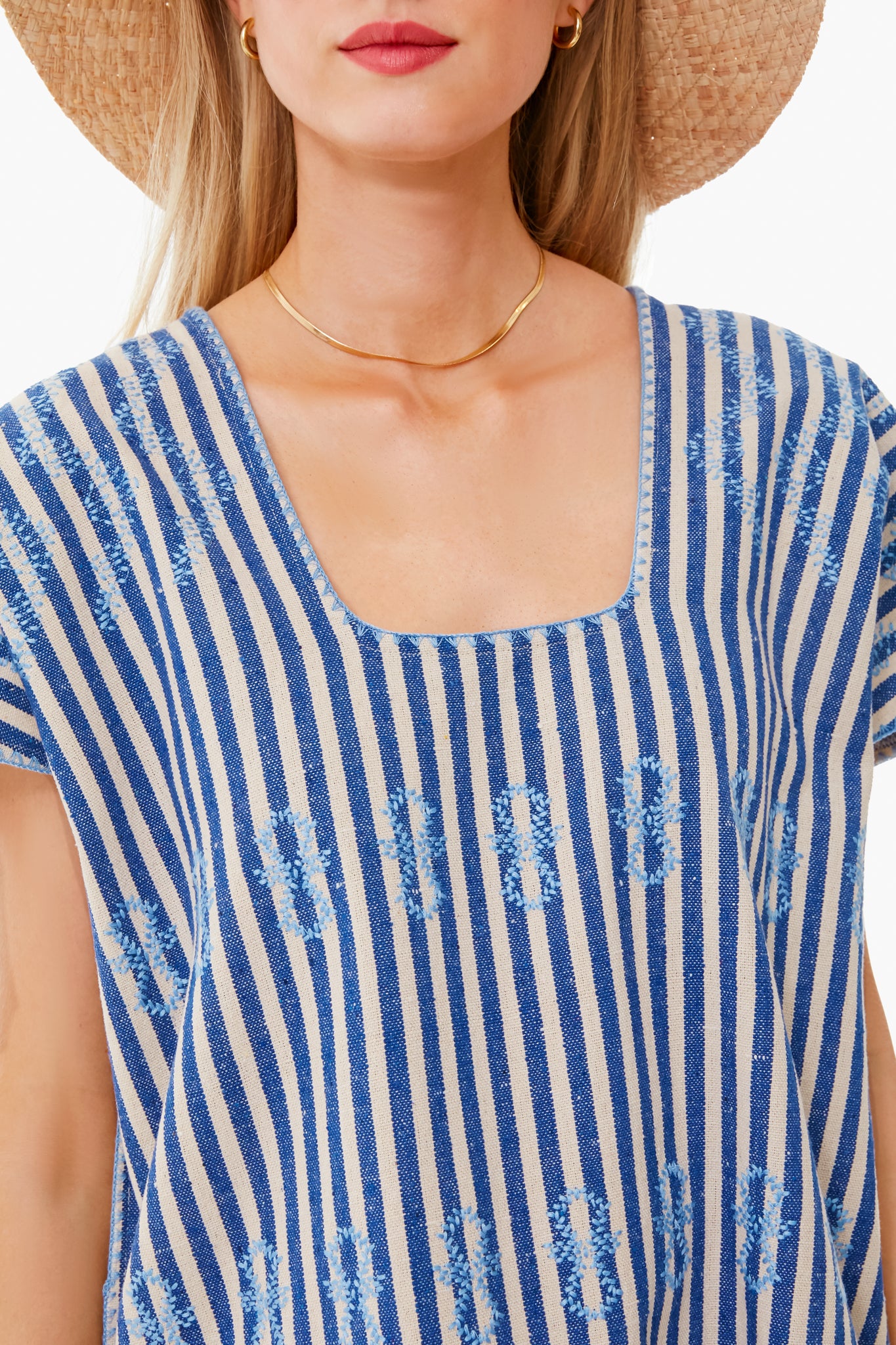 The Sullivan Caftan is the perfect lightweight cover-up to take you from the beach to the ice cream shop with ease and style. Featuring a chic square neckline. stripe fabric and embroidery details. this throw-on-and-go piece is finding its way into our bags for warm weather escapes this season!