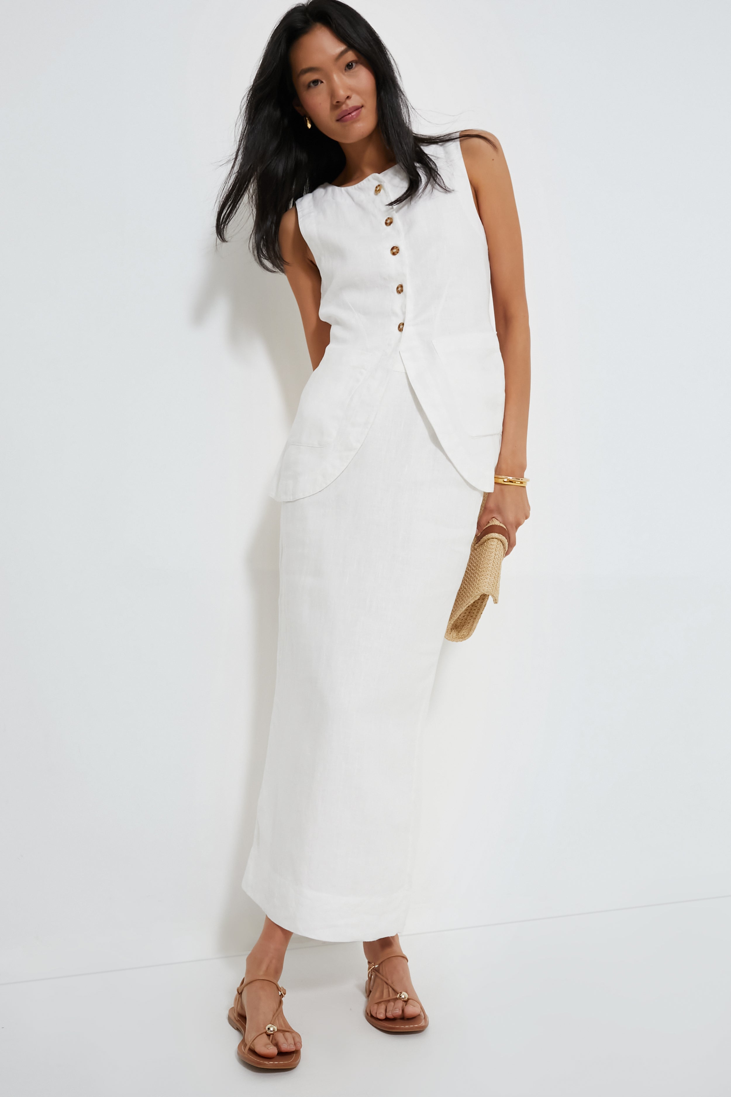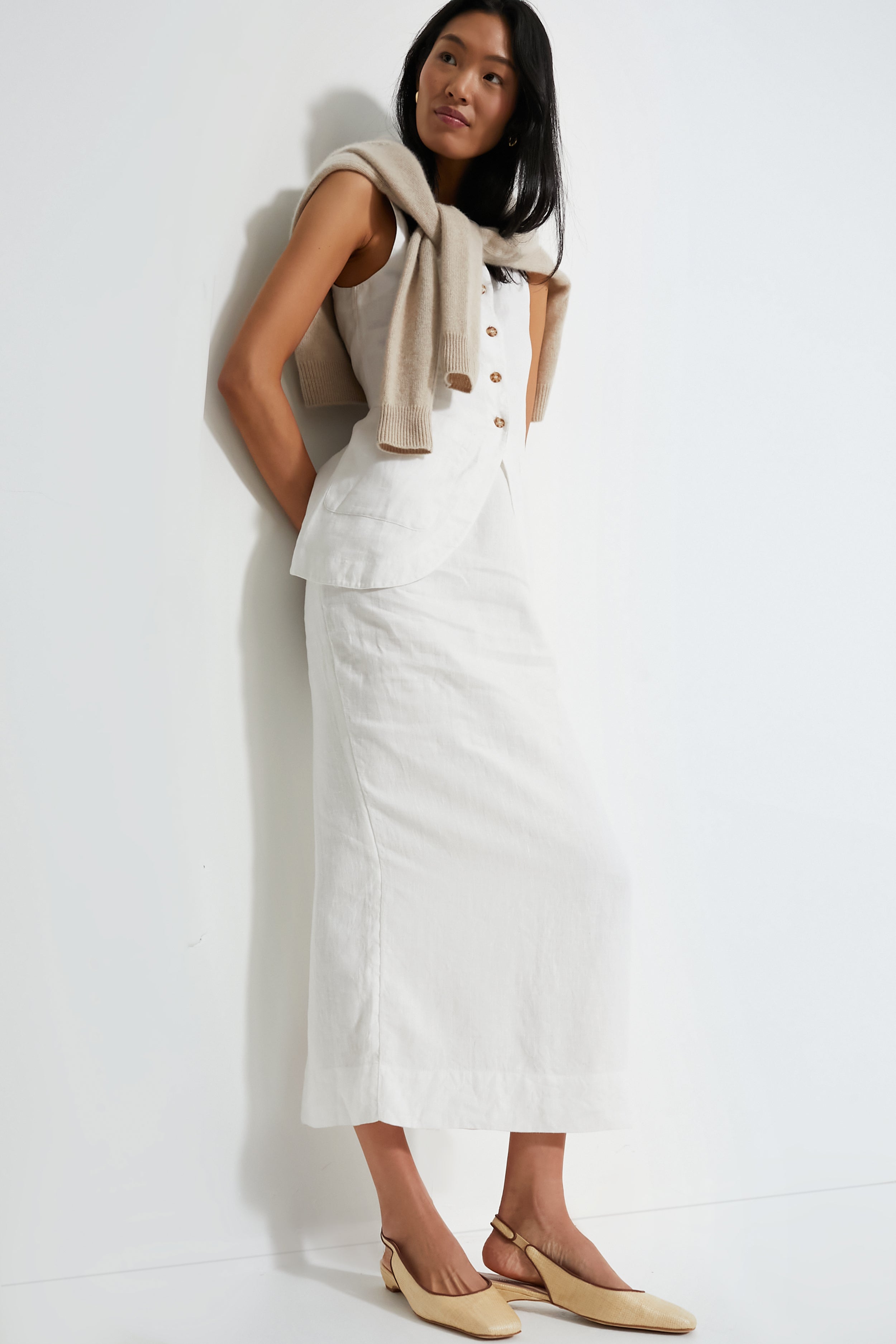 Experience timeless elegance with the Ivory Emma Pencil Skirt. Crafted from premium linen. this stylish number sits high on the waist and reveals a stunning centre split at the back. Pair with the matching Ivory Emma Vest. gold jewelry. and heels for the elevated look of the year.