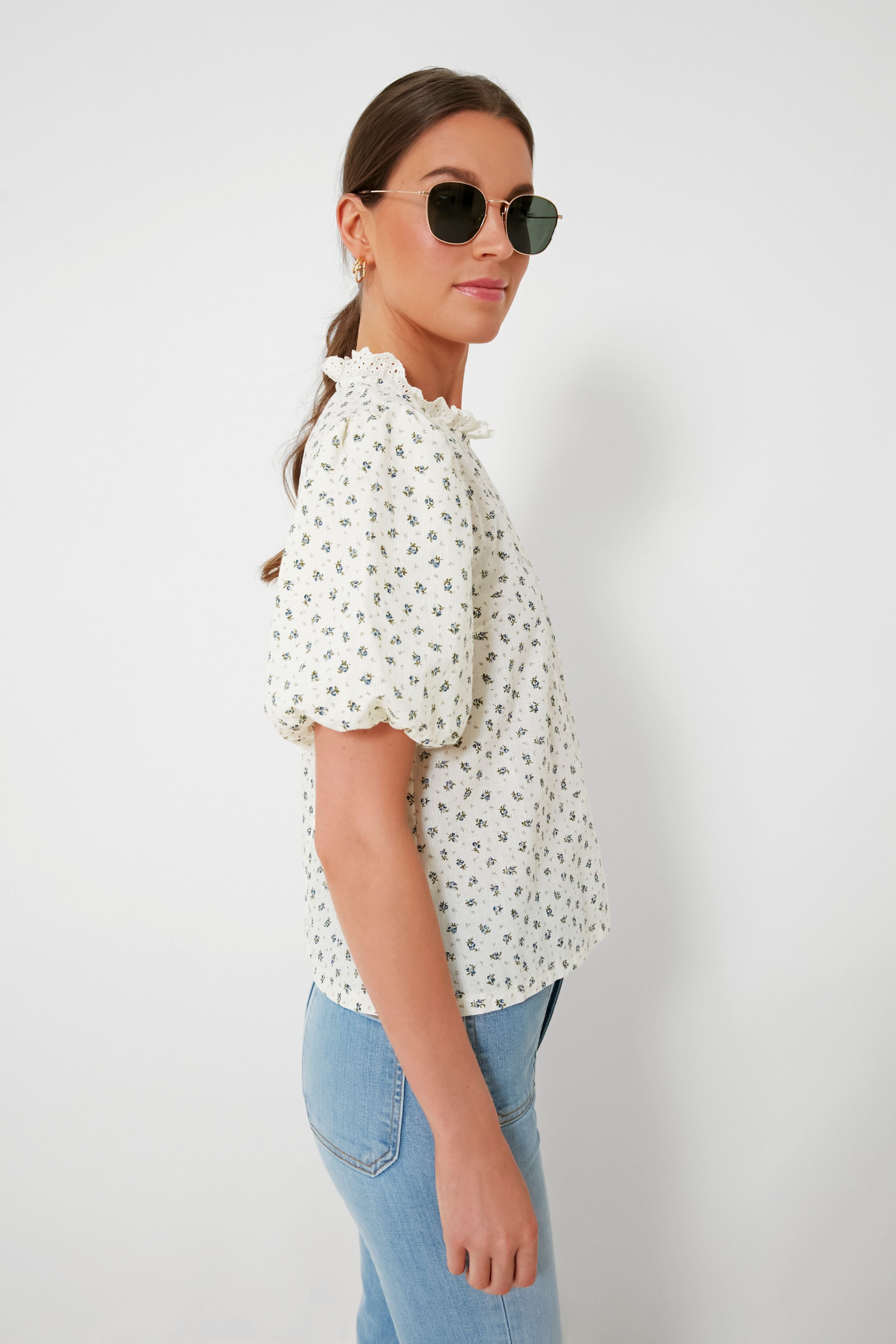 We love an elevated basic. and the Lottie Blouse fits the bill. Featuring a delicate floral print. eyelet trim at the collar. and subtle puff sleeves. this top is the perfect addition to your wardrobe. Pair with your go-to jeans. neutral flat sandals. and classic sunnies for a casual yet polished ensemble for those on-the-go days. Or swap into crisp white denim and raffia heels for dinner with the girls - either way. this blouse will be on repeat this season!