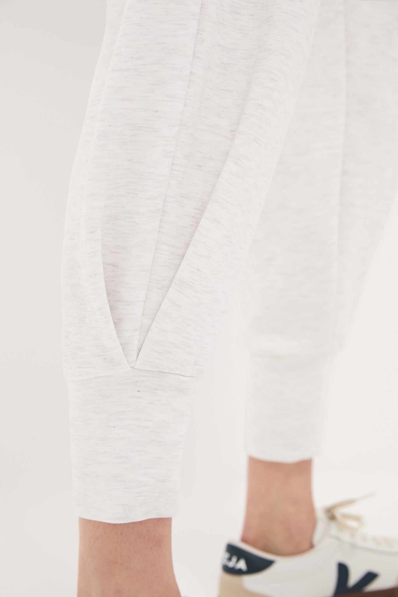 Embrace the perfect blend of style and comfort with this Ivory Marl Relaxed Pant 25. The relaxed fit offers ample room for movement and the elastic waistband provides a secure fit while allowing for easy on-and-off. Whether you're lounging at home. running errands. or meeting friends for coffee. these pants are your go-to choice. Pair them with a soft turtleneck for a polished look. or throw on your favorite tee for a laid-back style.