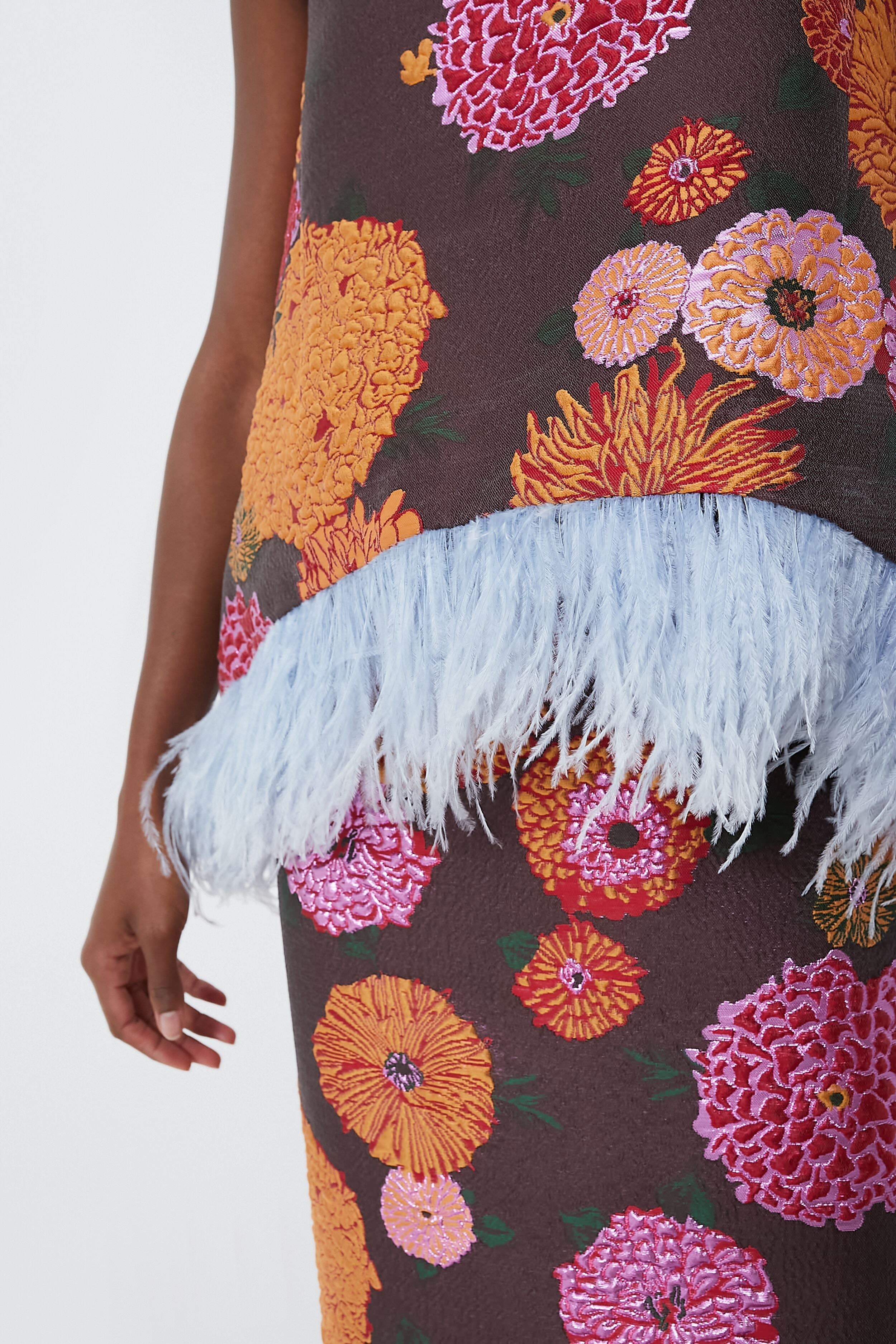 - Ostrich feather trimmed hem
