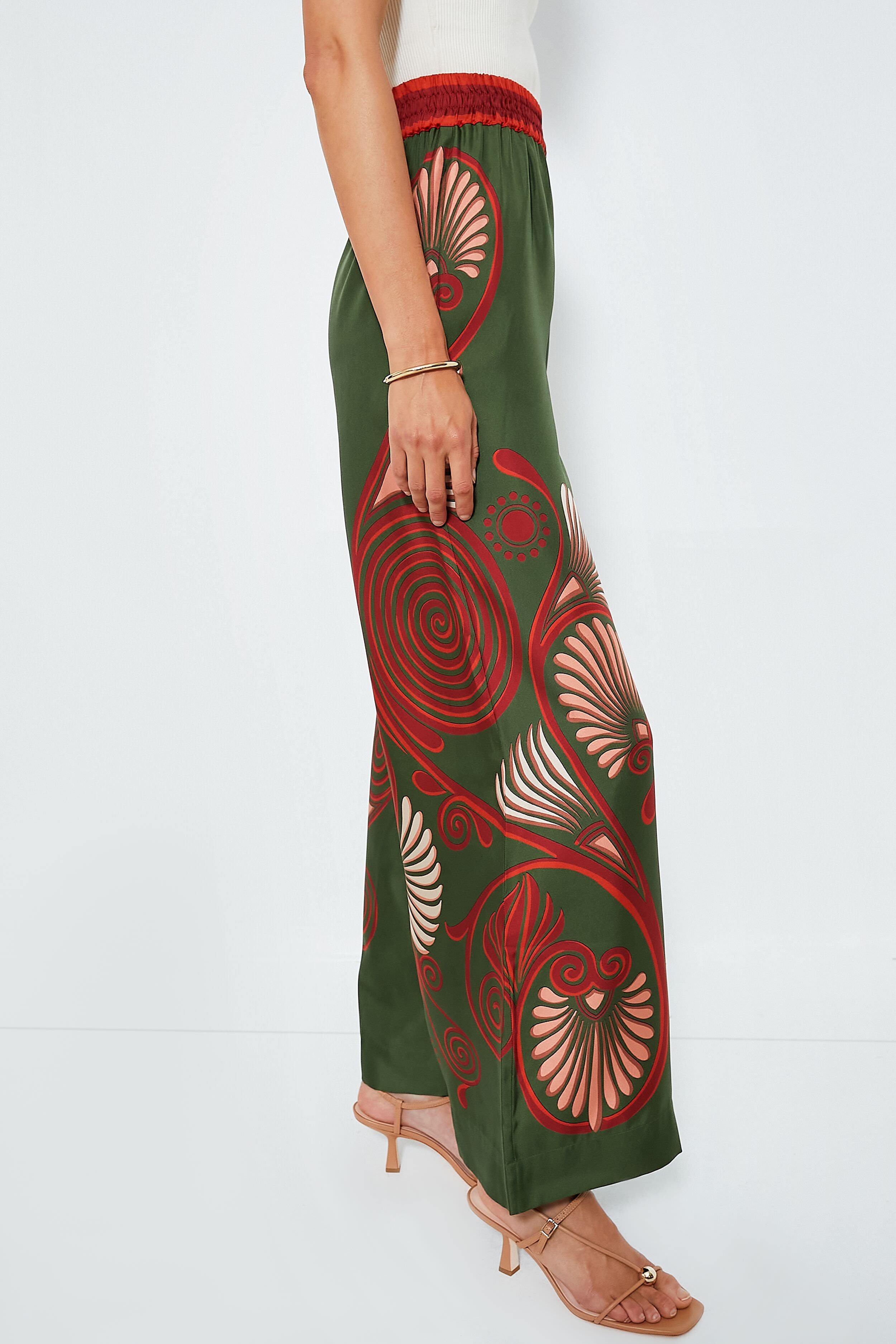 - Flared wide leg silhouette