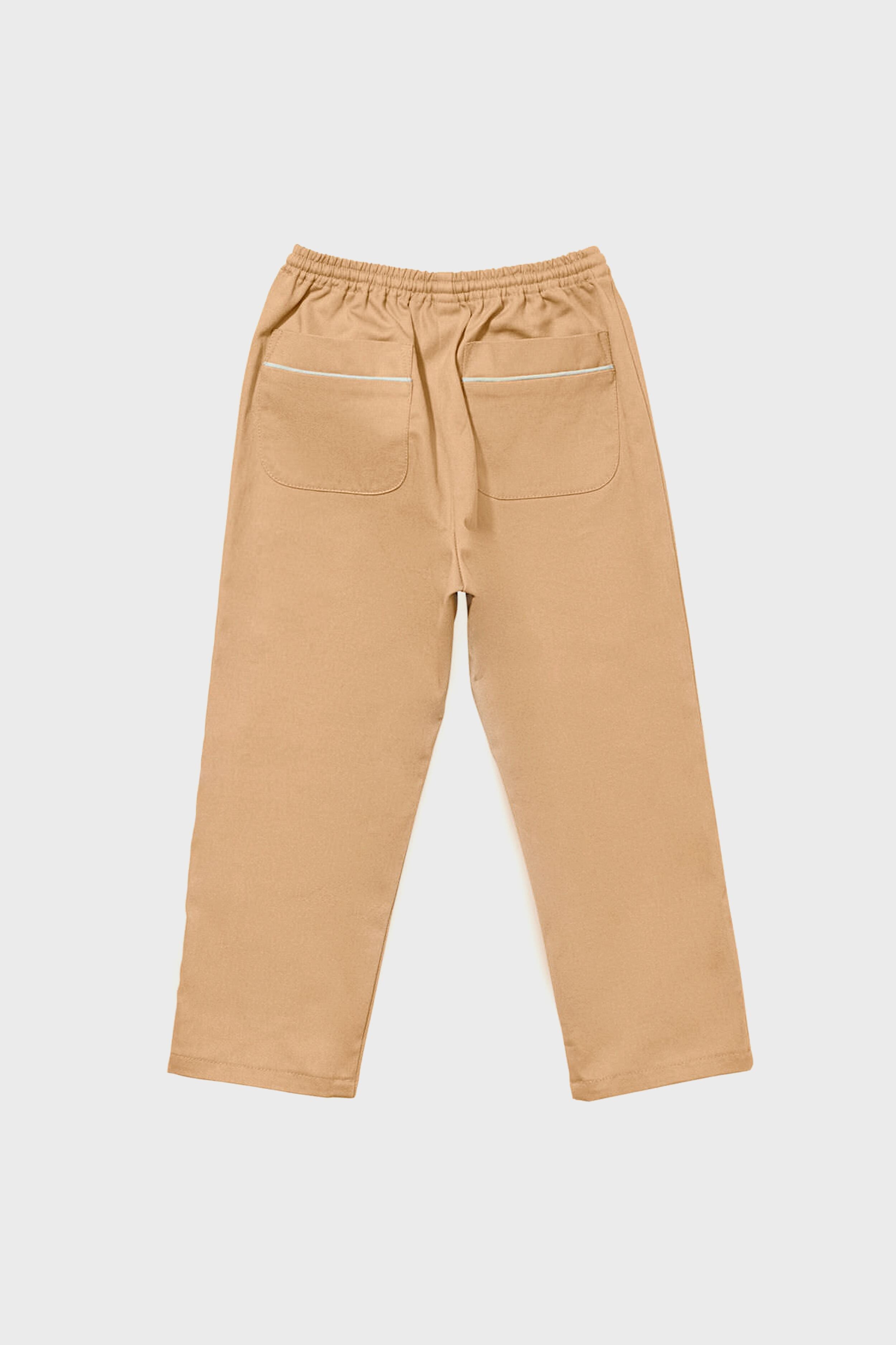 Meet the Khaki Bowie Pant. a versatile and functional addition to your little one's wardrobe. Crafted with soft and durable French Twill. these pants are designed for hassle-free diaper changes and everyday wear. They feature an adjustable drawstring waistband and cuffed ankles for a secure fit. adapting with your baby's growth spurts. Pair them with a t-shirt for casual outings or a button-up shirt for a polished look.