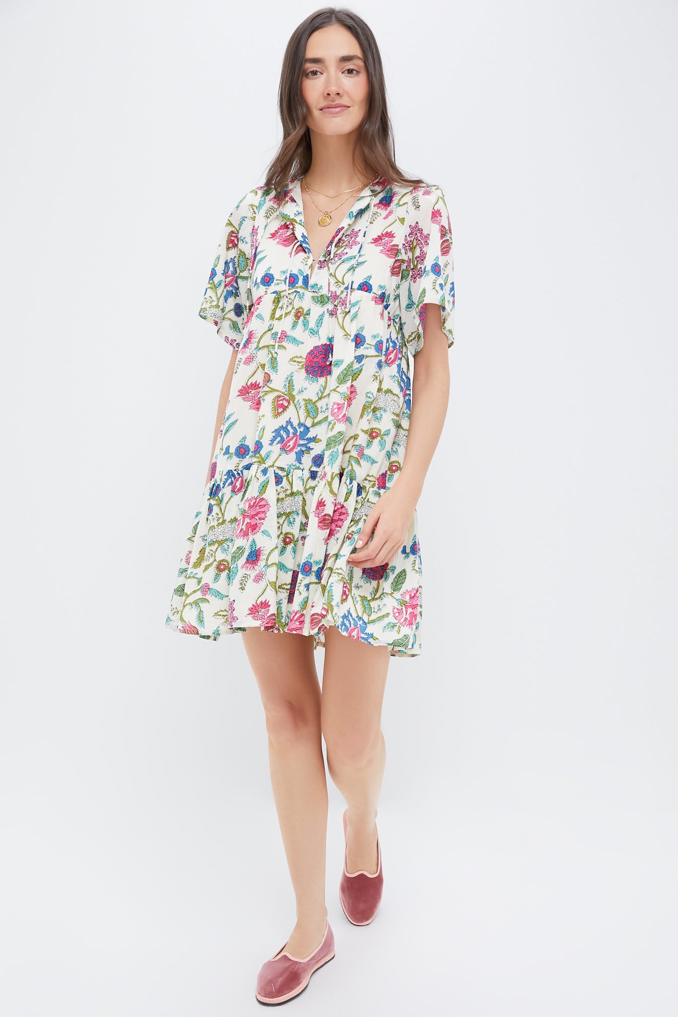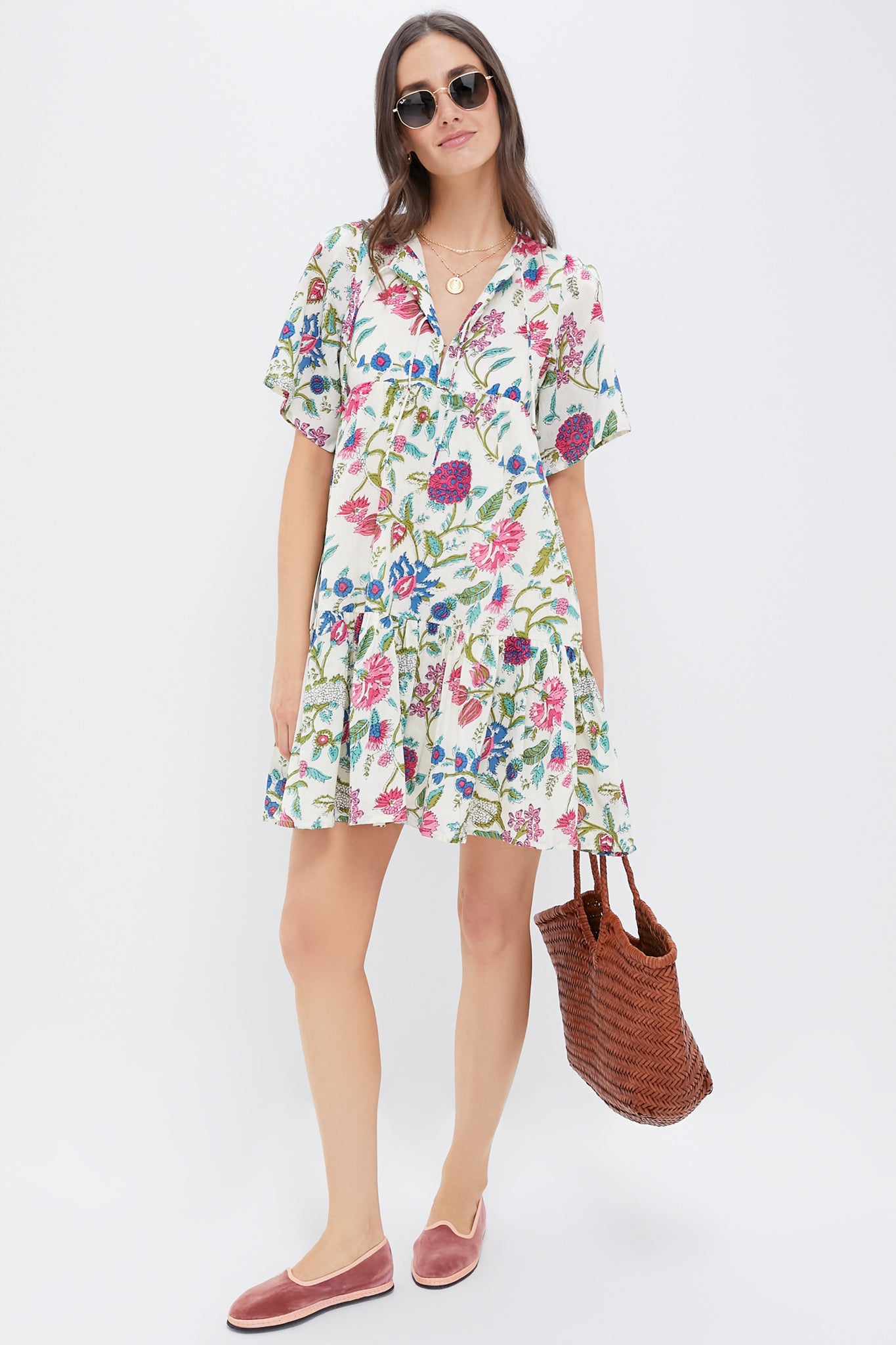 Cut from organic cotton. the Laurent Organic Isla Dress is a easy breezy style featuring a tiered silhouette. short puff sleeves and a deep v-neck. Throw this on over a bathing suit to head to the beach or pair with statement earrings and wedges for a happy hour!