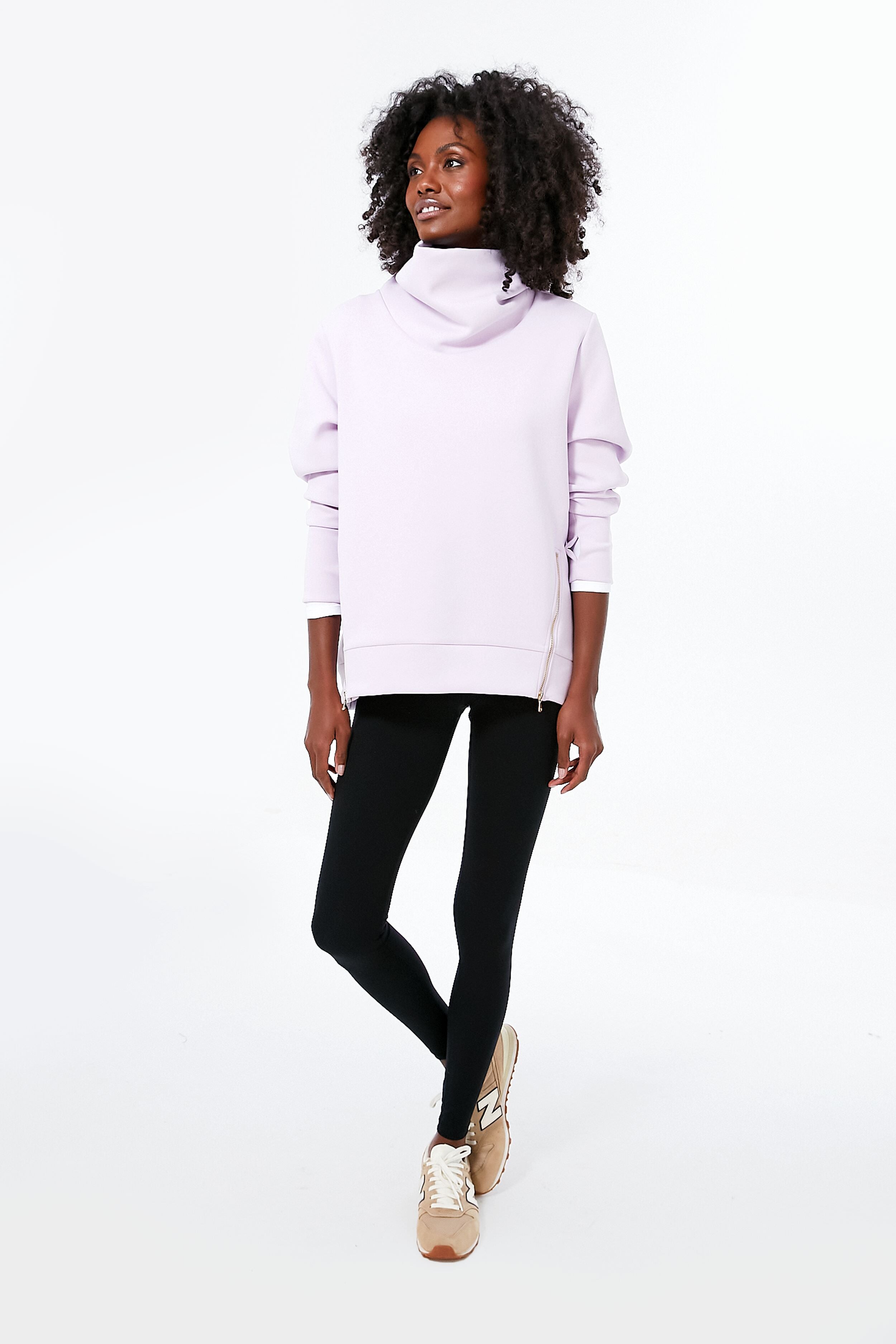 The Lavender Everyday Pullover is the easiest. throw-on-and-go silhouette to keep you comfortable no matter where the day takes you. With a high funnel neck. thumbholes at the cuffs. and side zipper details. this will quickly become your new favorite piece of athleisure wear. Pair with a tote and leggings for the perfect off-duty weekend look.
