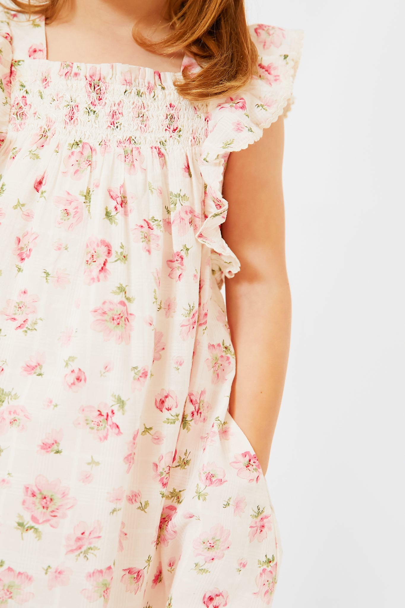 The Little Girls Floral Smocked Cotton Dress is a cute addition to your little fashionista's wardrobe. Crafted from soft cotton fabric that feels gentle against delicate skin. while the flowing shape will have your child twirling around all day long. Dress it up with a headband for family photos or weekend brunch. or dress it down with sneakers for time spent at the playground!
