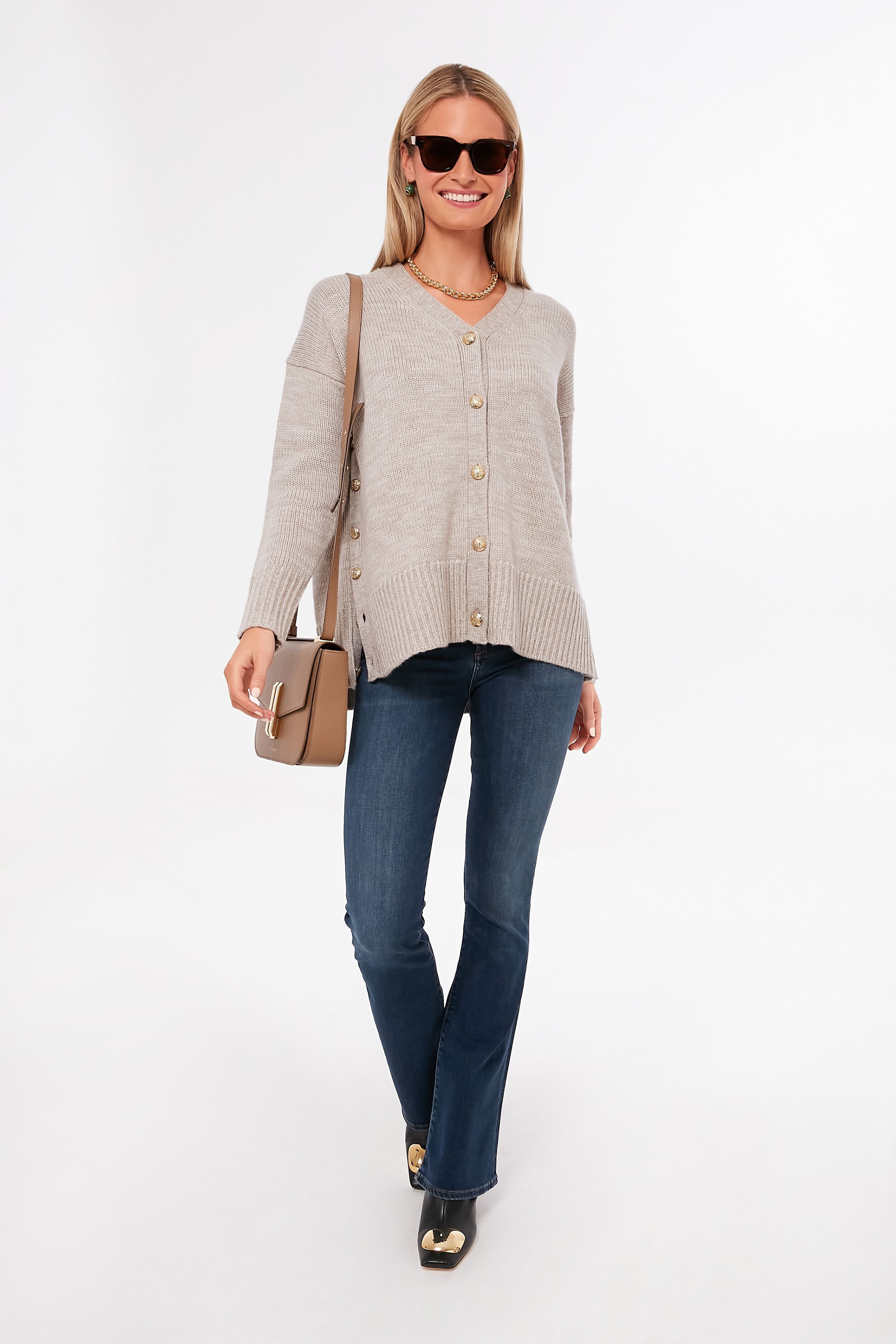 A classic cardigan never goes out of style. but we've made some additions that we're sure you'll love. The Meyers Cardigan features a full-front placket with gold buttons but the best part is the button down side seams that add some flair to this traditional style. In a neutral oatmeal hue that goes with anything. this updated number is sure to live in your closet for years to come. Easily wear this polished piece over a turtleneck for extra layering or on its own. just add gold accessories to match and you're ready for the office. happy hours. after-school events. or whatever else the day throws at you.