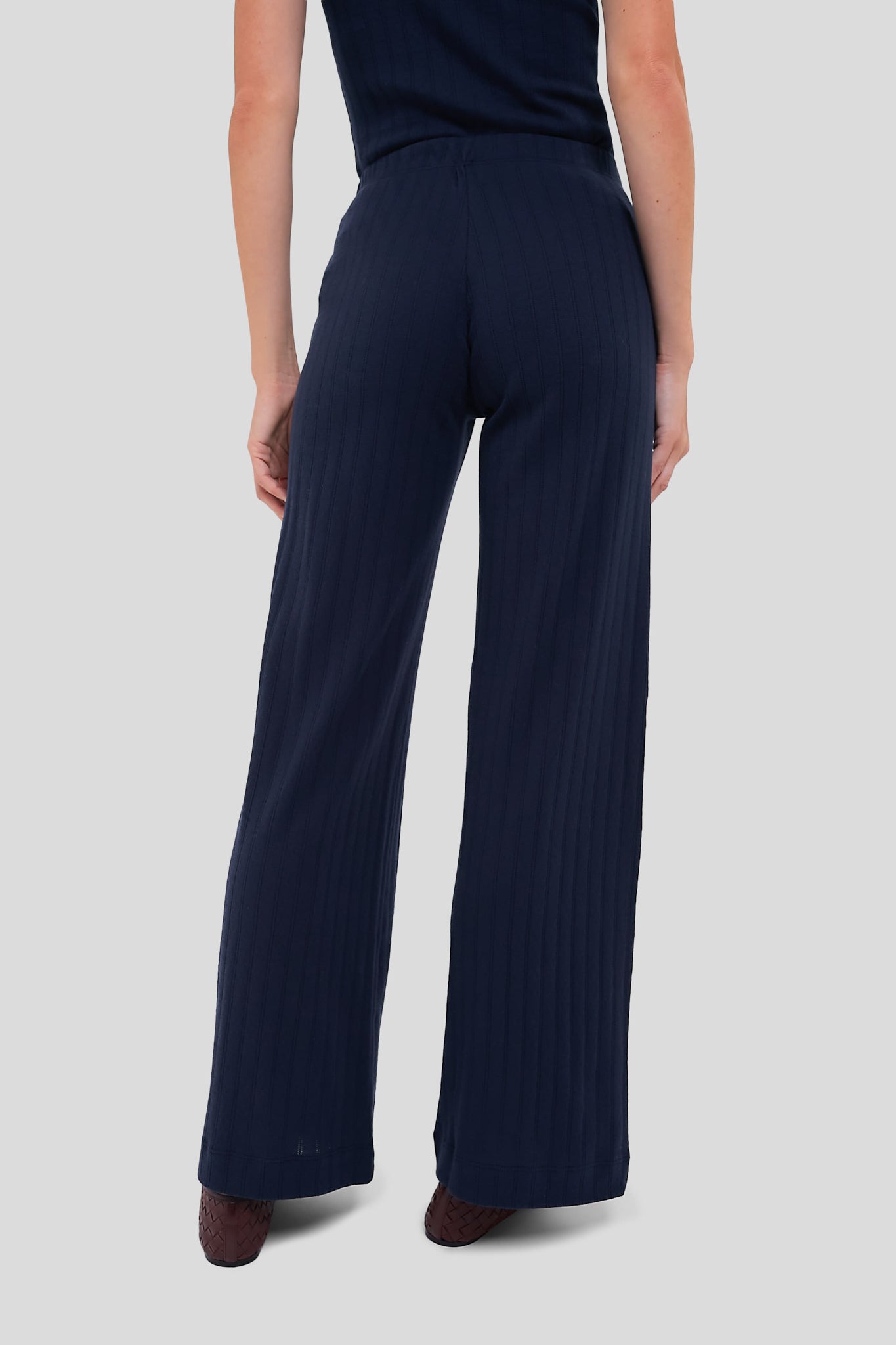 Cozy and chic. the Midnight Boxer Pants is a relaxed. wide leg silhouette. featuring pinhole stripes. dainty eyelets. henley buttons and a comfortable elasticized waistband that sits at the natural waist. From chic airport looks. to lounging around the house on a dreary Sunday. to grocery store runs. pair it with the matching Midnight Pointelle Slim Fit Tee for the perfect girl-on-the-go look all year long.