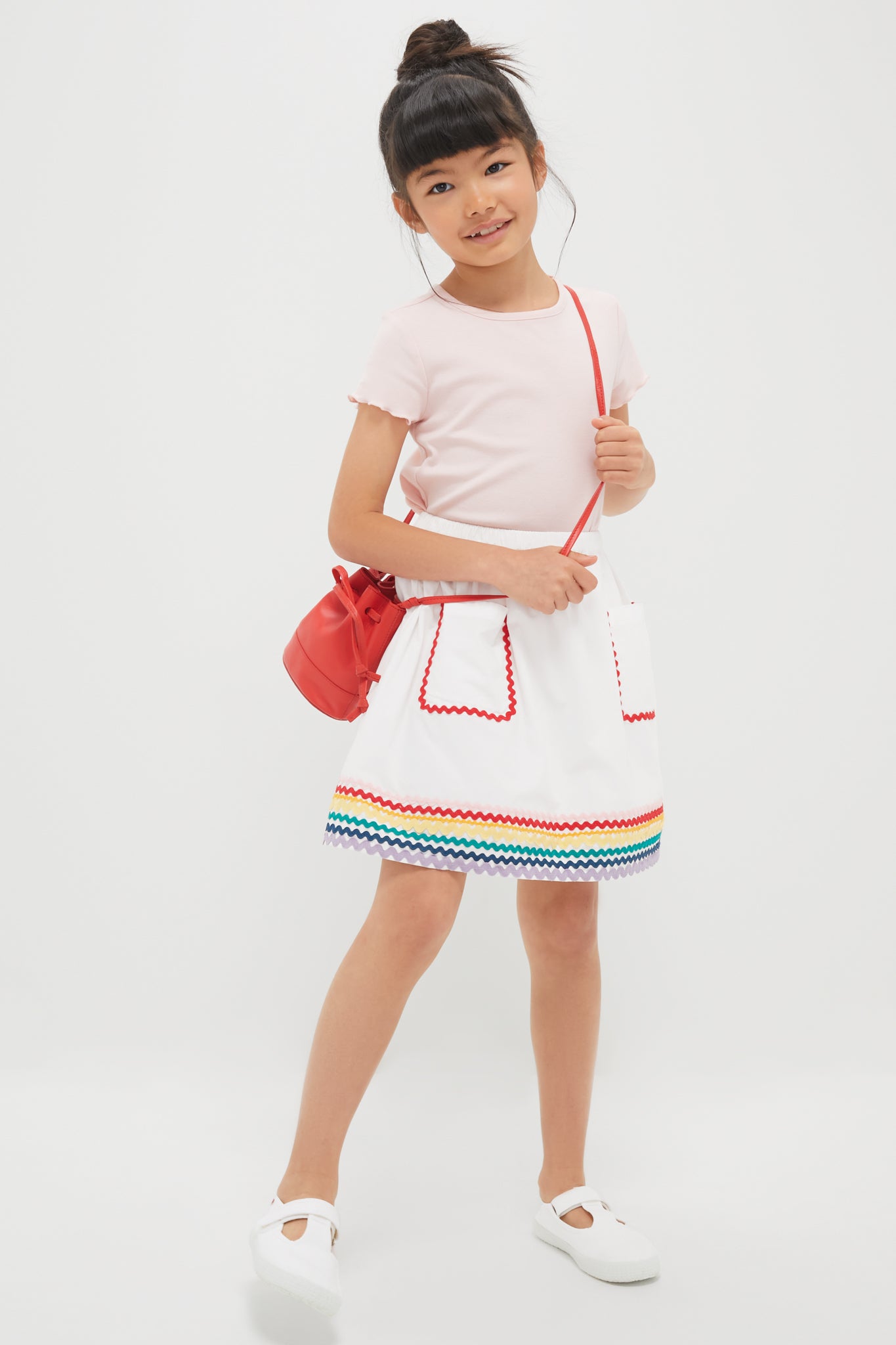 The Multi Ria Rainbow Skirt features a comfortable elastic waistband. rainbow ric-rac trim. and patch front pockets. this skirt is perfect for twirling. park play dates. and picnics! Just add a blouse and sandals or sneakers for versatile wear for your little fashionista!