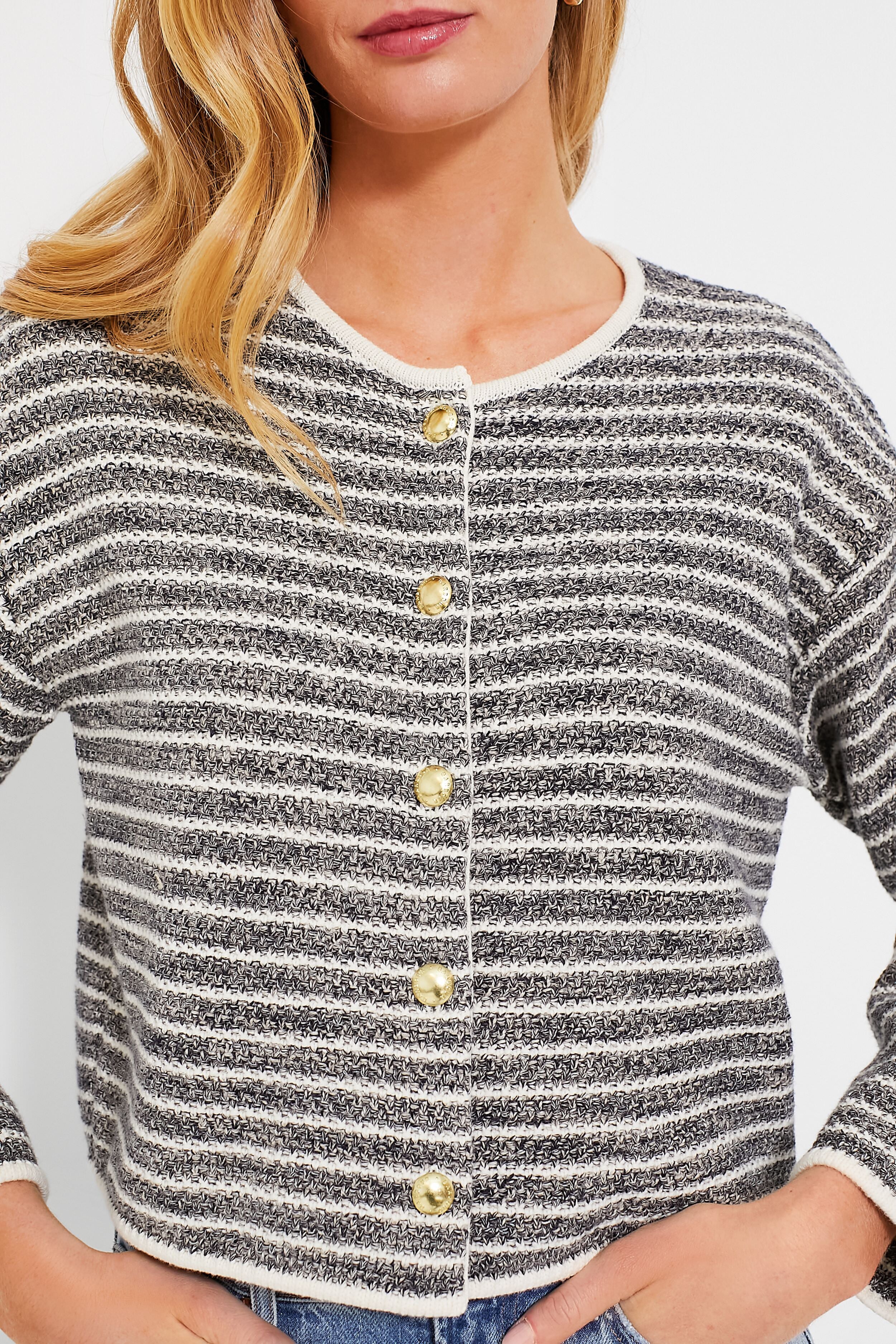 Hop on the lady jacket trend with the Multi Stripe REI Knitted Cardigan. This textured toss-on-and-go sweater is a masterclass in timeless style with its bracelet length sleeves. charming stripes. and shiny button details. so you're sure to wear it over and over again. Lightweight enough for layering. we love how this looks buttoned up as a top. undone over a tee. or paired with go-to denim for an easy yet elevated outfit formula.