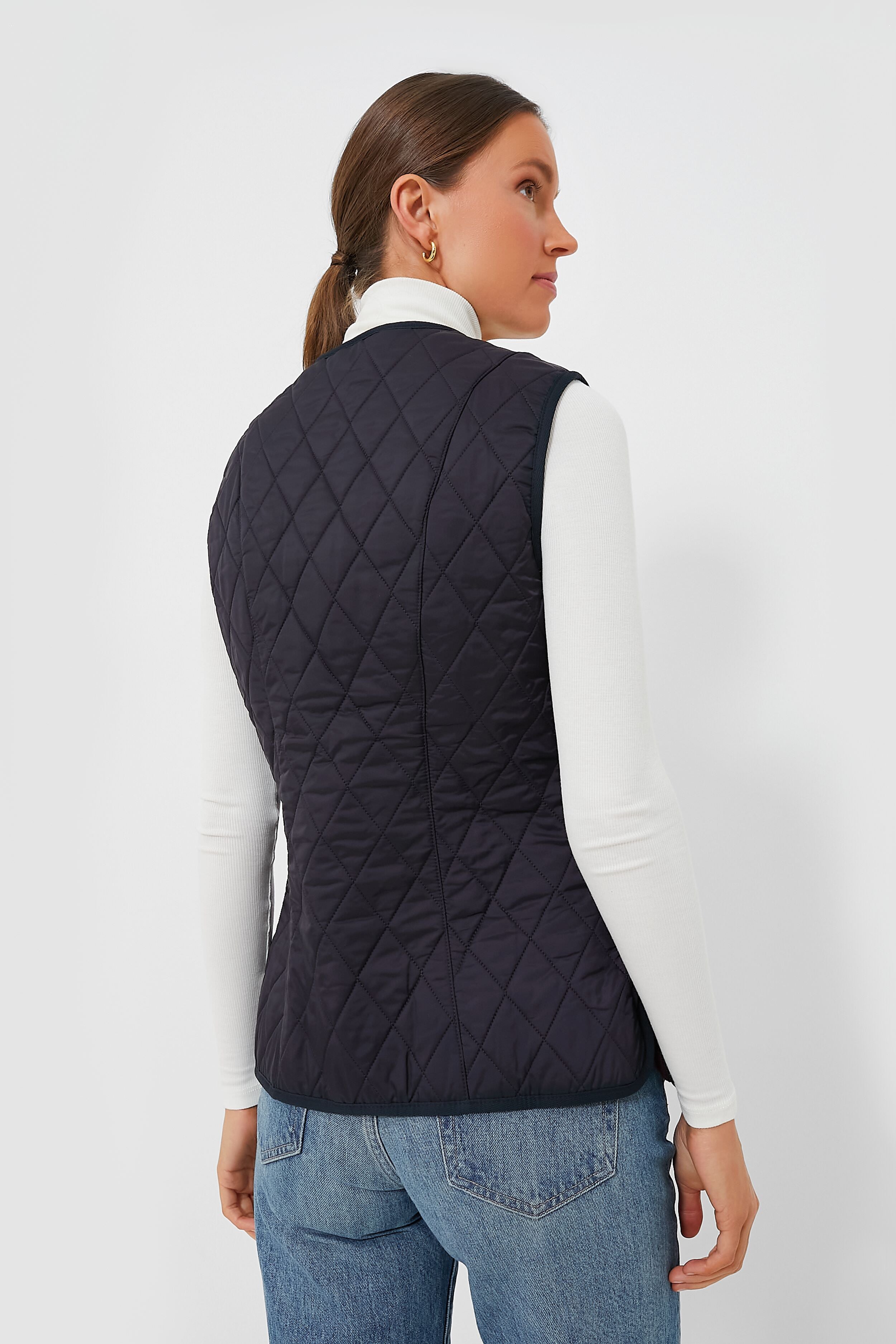 Offering the same fuss-free looks and timeless style as the original Betty Liner. this updated version adds a cozy fleece lining for extra warmth. Deep patch pockets are ideal for keeping hands out of the cold and essentials close by. while grosgrain binding and contrast embroidery enhance the premium appearance. Perfect worn alone. zipped into a Beadnell. or over a turtleneck. this vest is versatile and comfortable. featuring the signature diamond quilt. flattering angle patch pockets. and a feminine fit.