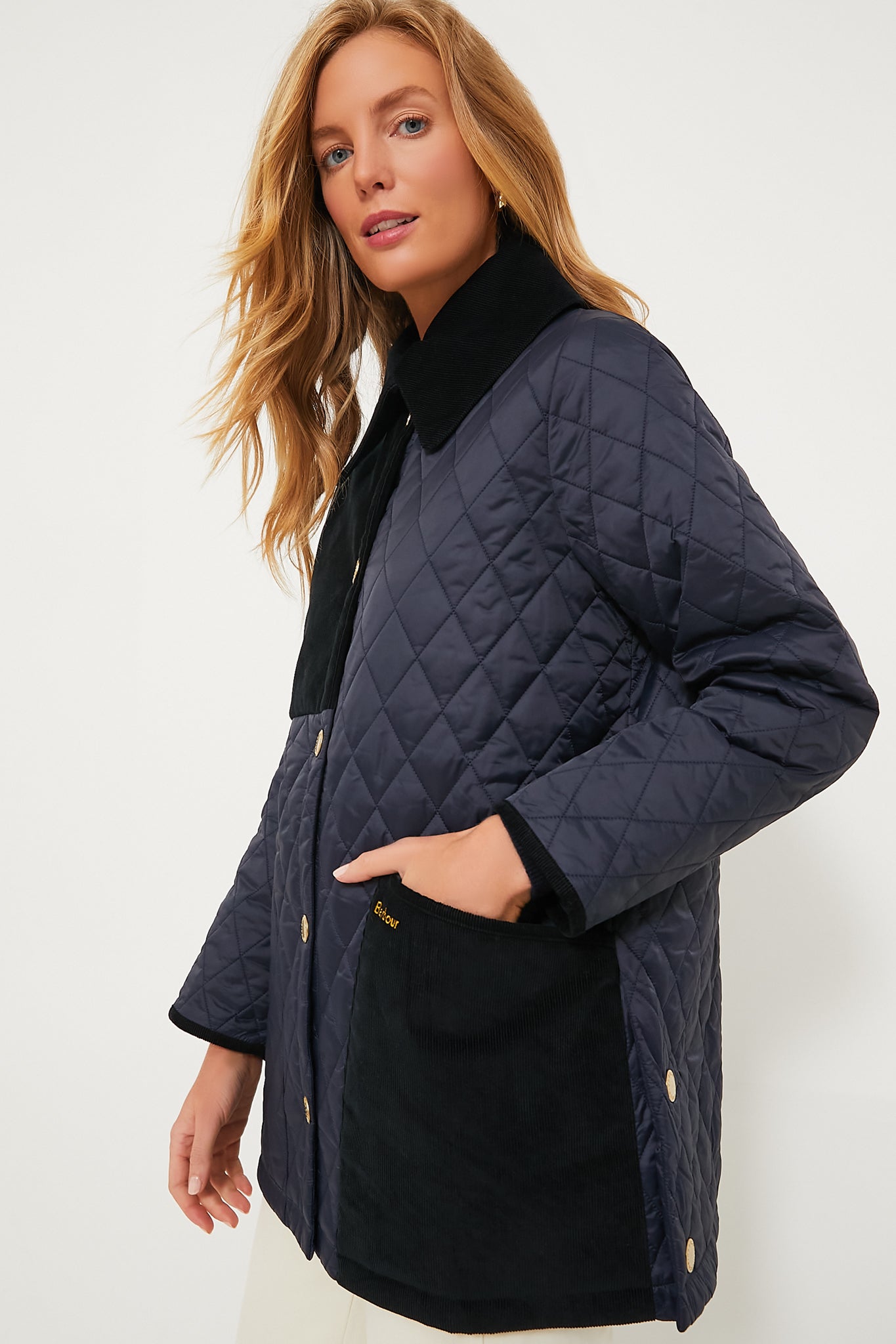 If you're looking for a reliable layer to see you through the changing seasons. the Navy Reeth Quilted Jacket makes an excellent choice. This diamond quilted design is complemented by a patchwork of brand's signature cord. branded stud fastening and functional patch pockets to finish. Whether you prefer to style it over T-shirts and sweatshirts or under your favorite jacket for added warmth - you'll be constantly reaching for this chic number.